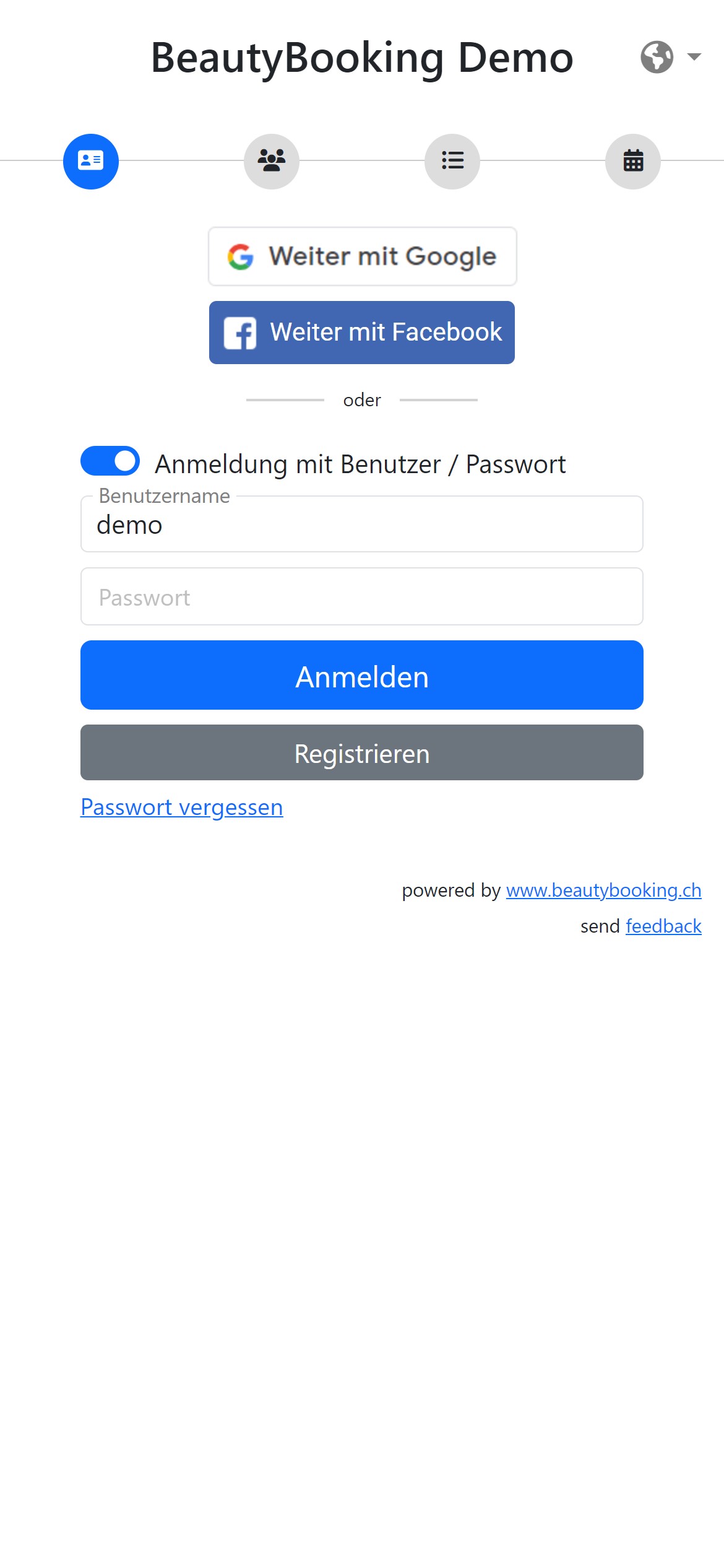 Wir bieten die Möglichkeit - Sie entscheiden wie sich Ihre Kundschaft anmeldet.