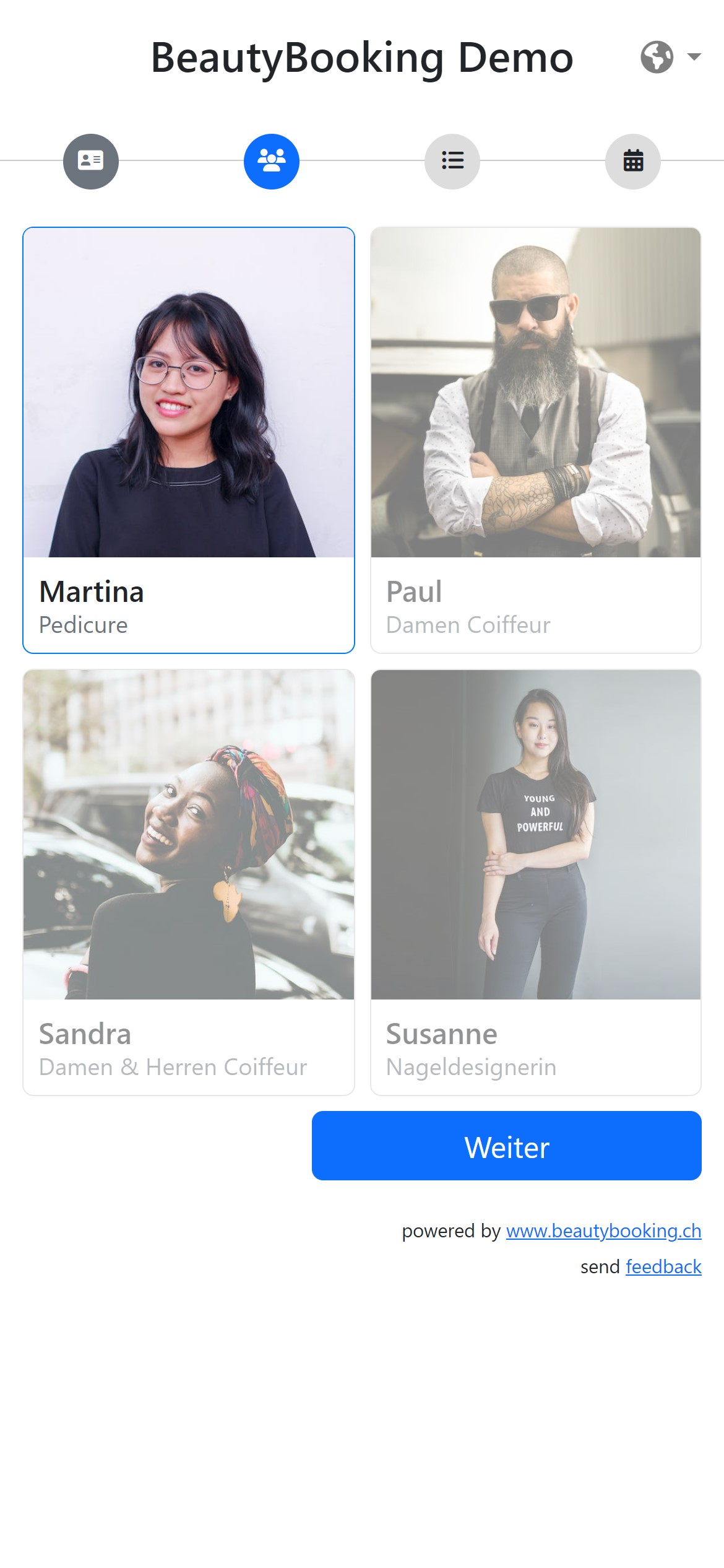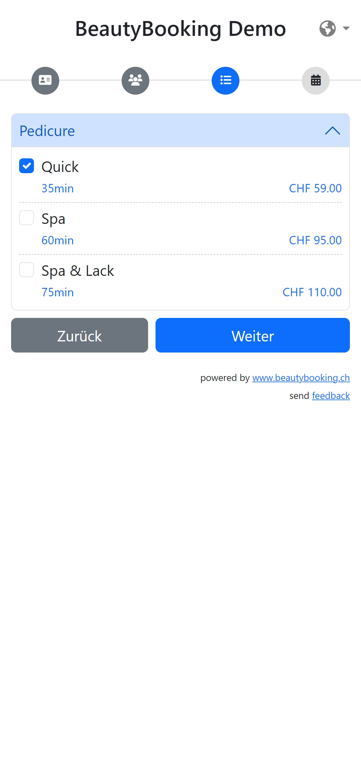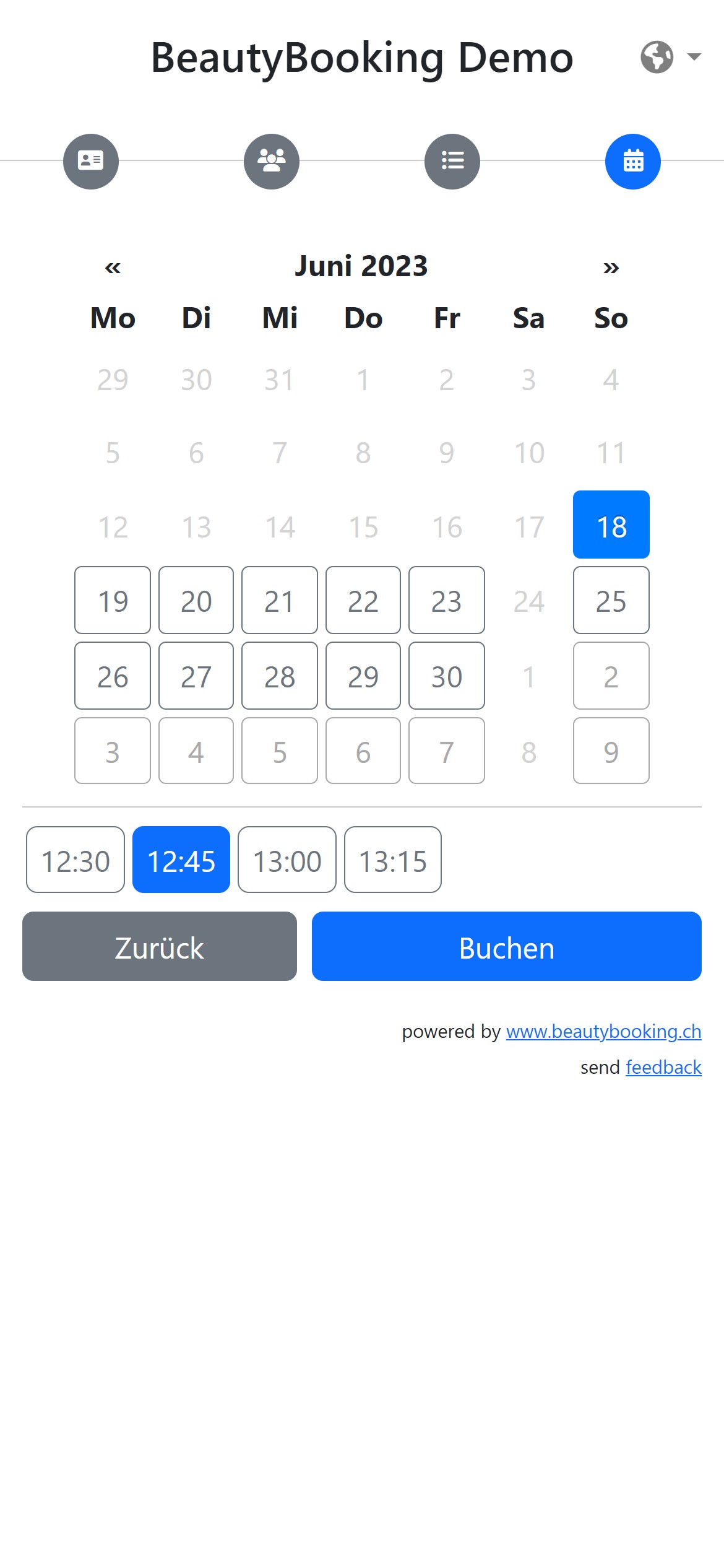 Unsere Oberfläche unterstützt Deutsch, Französisch, Italienisch und Englisch.